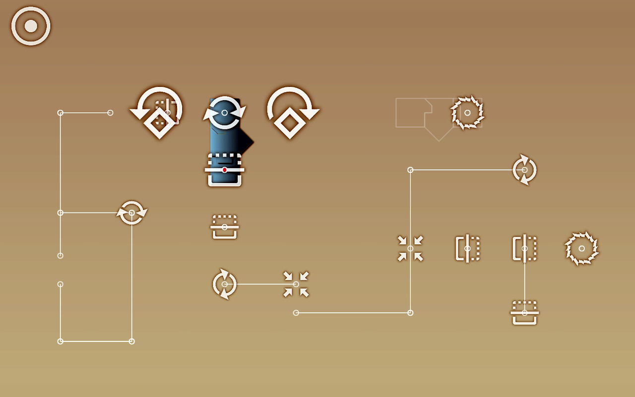 각 퍼즐은 정해진 '선로'로만 움직일 수 있고, 이동하는 길에 서로 닿거나 걸리면 다시 여러 방향으로 회전시키거나 위치를 바꿔볼 수 있다.