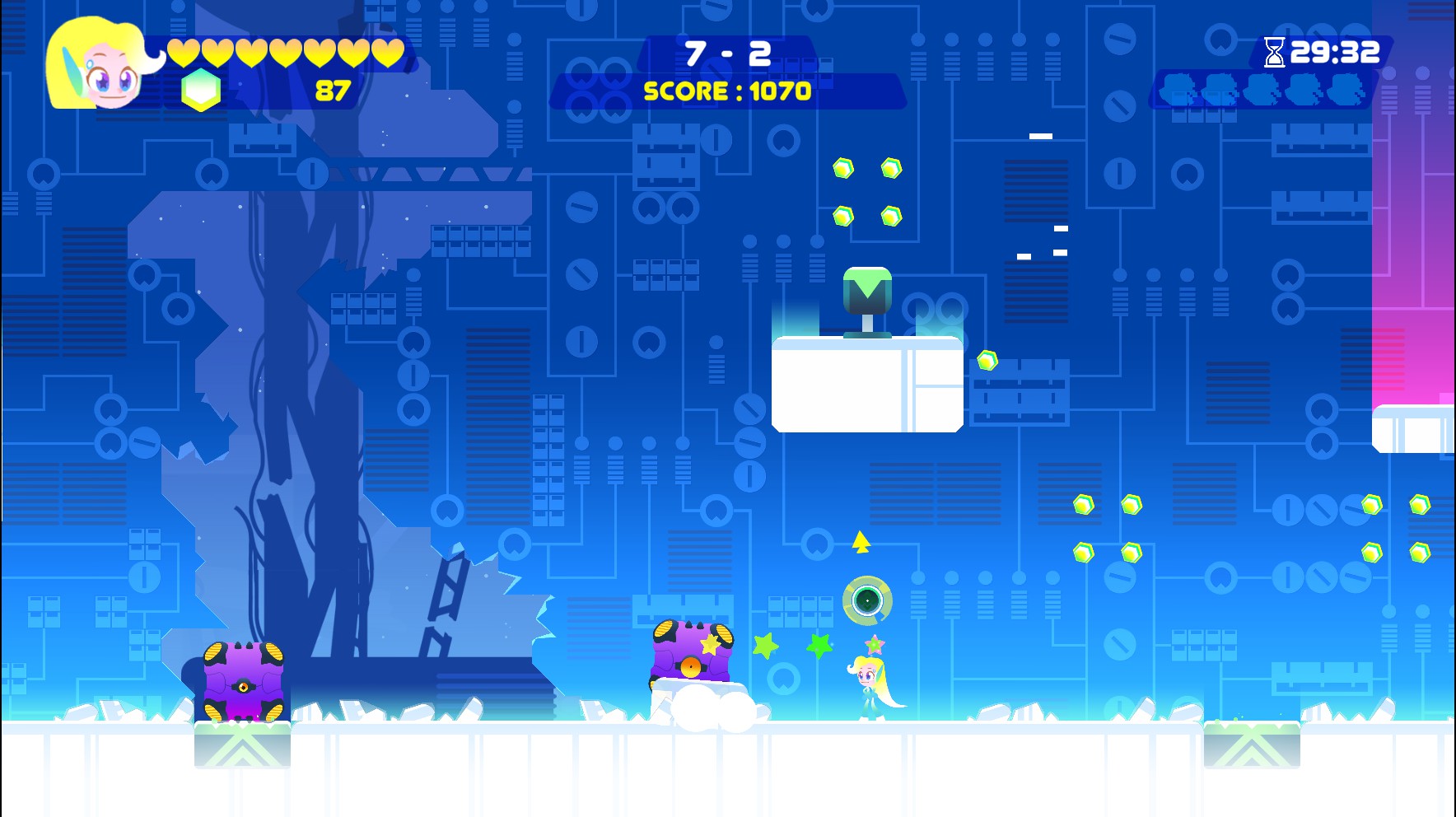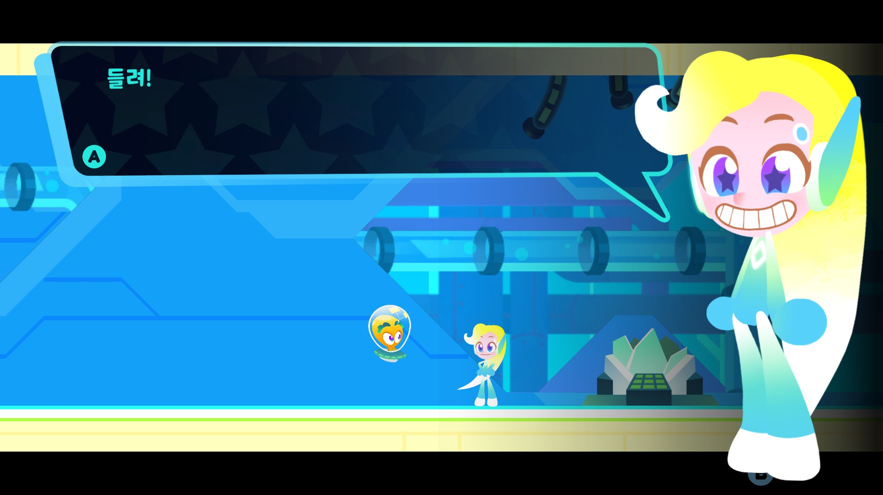 갤럭시 테일즈는 기본적인 점프, 대시 외에 홀드그랩이라는 작은 타일을 잡아 이동하는 특유의 방식으로 게임을 풀어나갑니다. 홀드그랩을 라푼젤이 머리카락으로 잡아당겨 반동으로 튕겨나가는 느낌.
