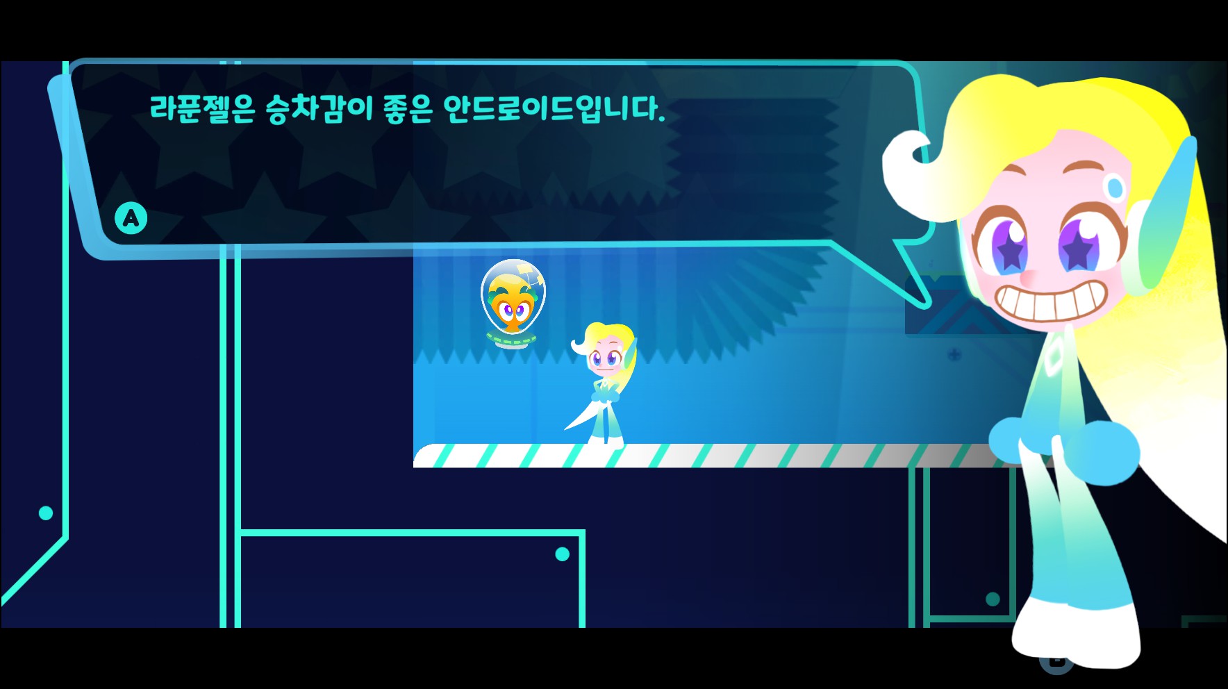 라푼젤이라는 이름처럼 머리카락을 사용해 대부분의 액션을 소화하지만, 점프, 앉기, 앉아서 이동 같은 기초적인 부분도 차근차근 가르쳐줍니다.