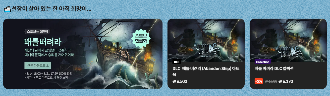 배를 버려라(어밴던 쉽)는 파이어블레이드 소프트웨어(Fireblade Softaware)에서 개발해 2022년 출시한 전략 게임입니다.