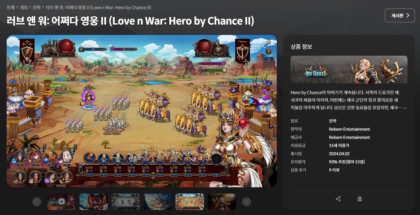 26일 0시부터 시작되는 무료 배포 게임은 '러브 앤 워: 어쩌다 영웅 II'로 지난번 받았던 어쩌다 군주와 함께 스토브에서 컬렉션 판매 중인 작품입니다.