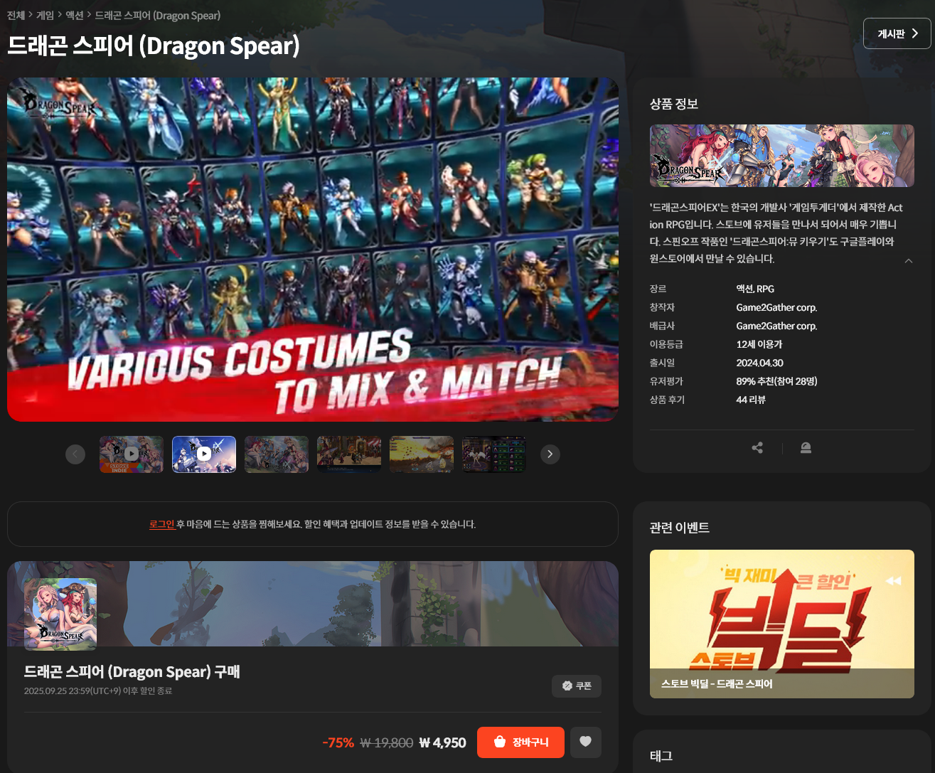 :: 스토브 드래곤 스피어 빅딜 페이지 ::