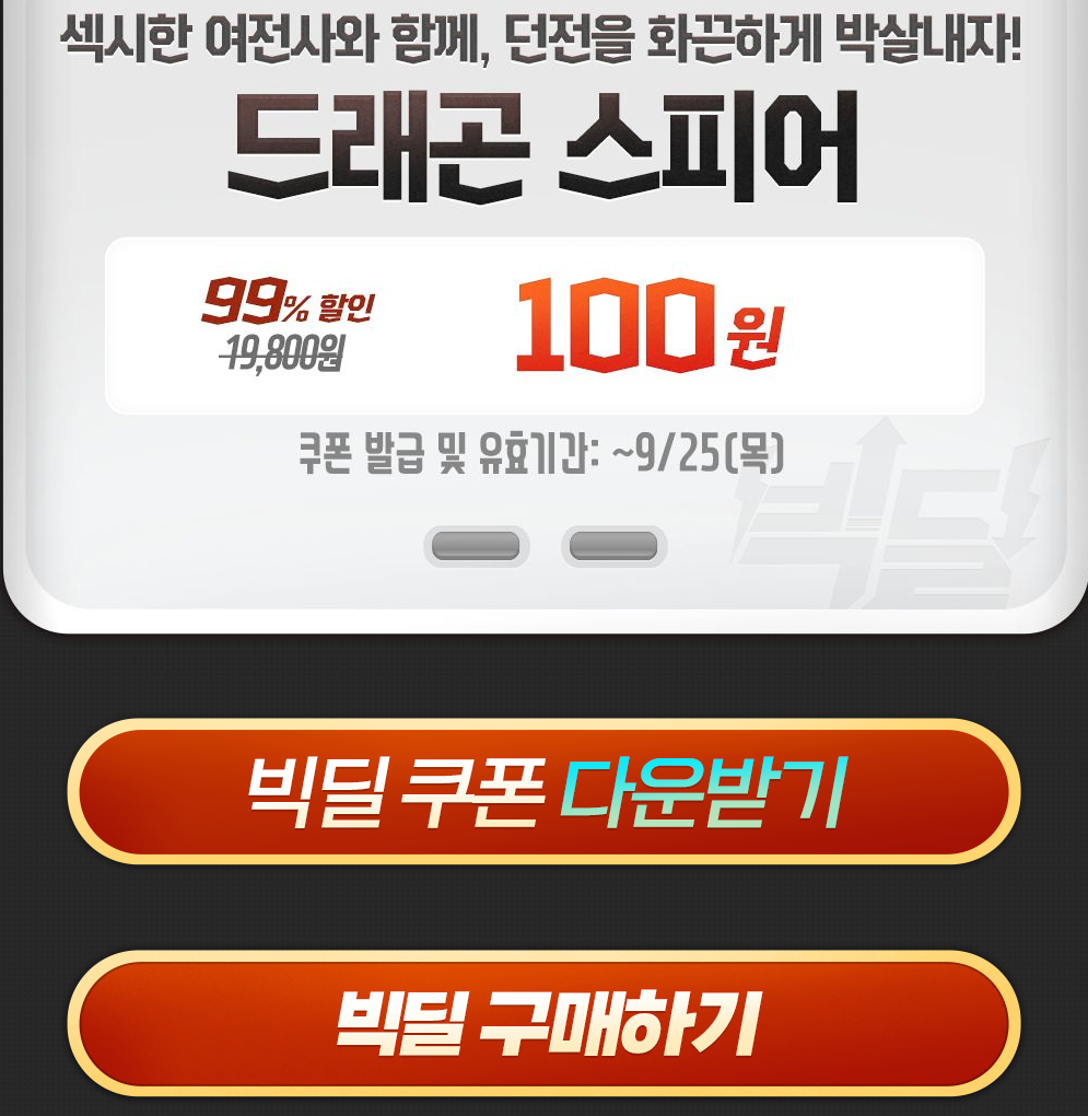 이번 수요일~목요일 진행하는 빅딜 이벤트 타이틀은 '드래곤 스피어(Dragon Spear)다.