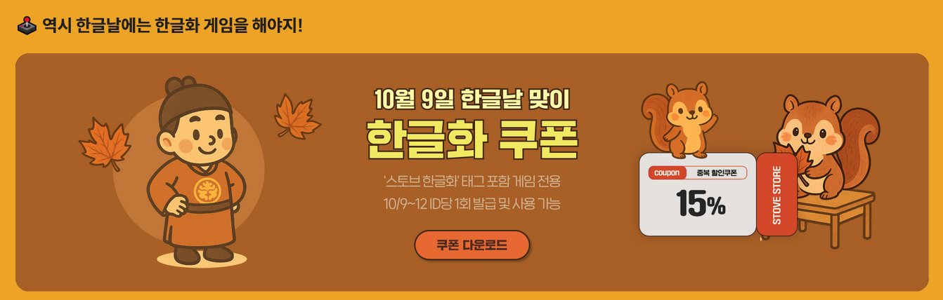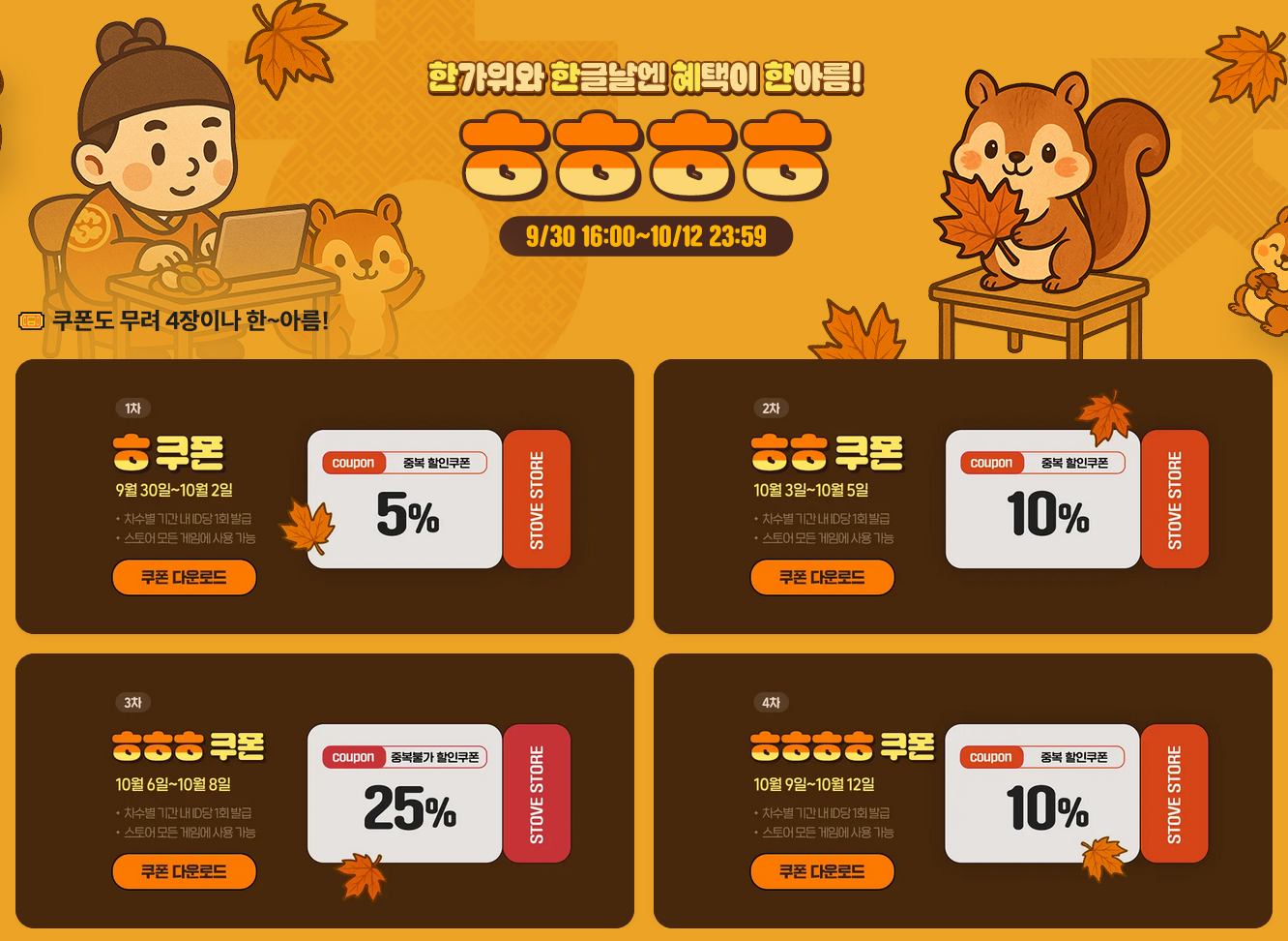 추석하고 한글날을 함께 뭉뚱그린 게 뭔가 이게 맞아? 싶기는 하지만... 일단 주간 이벤트(9월 30일~10월 12일)가 진행됩니다.