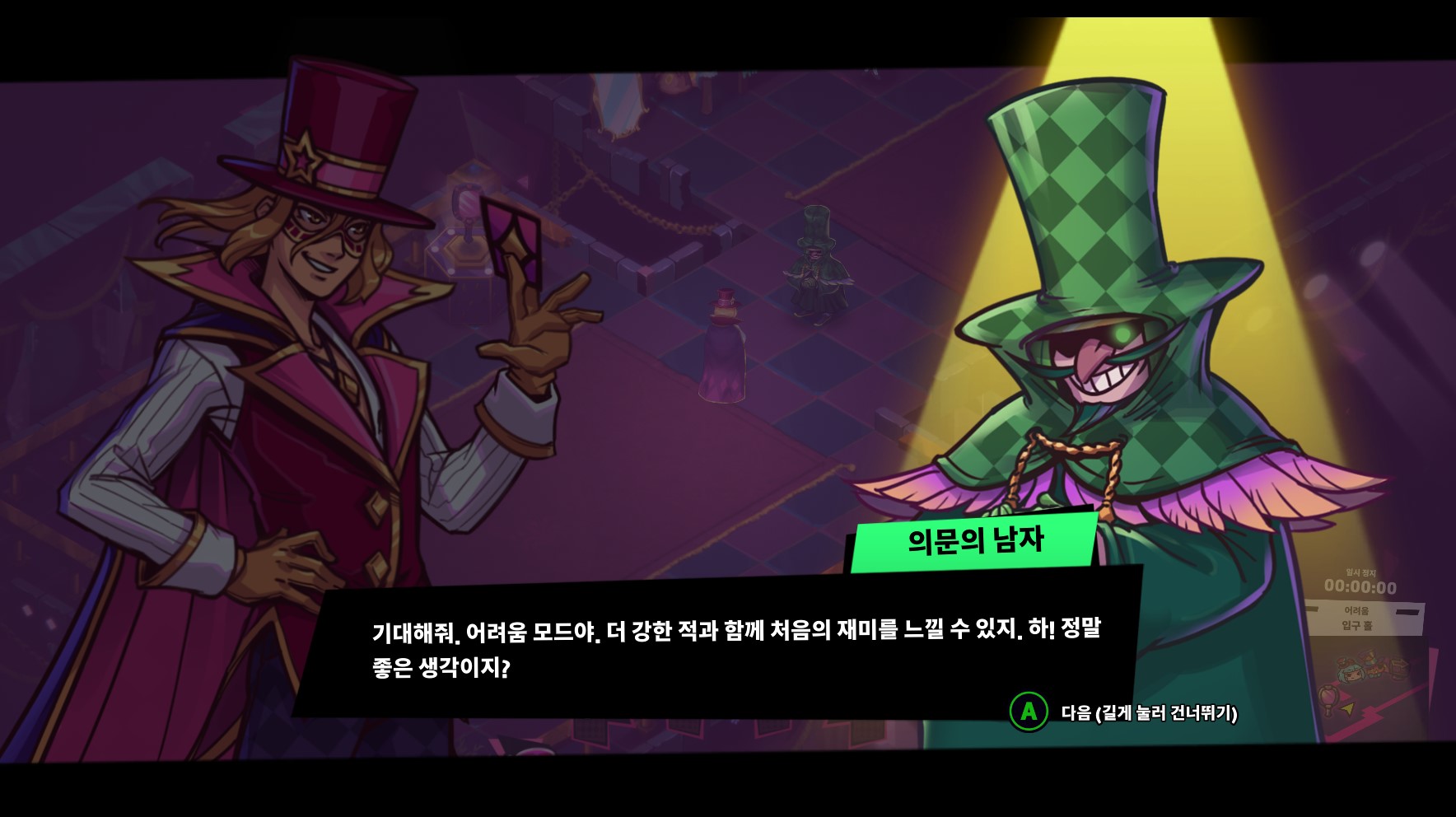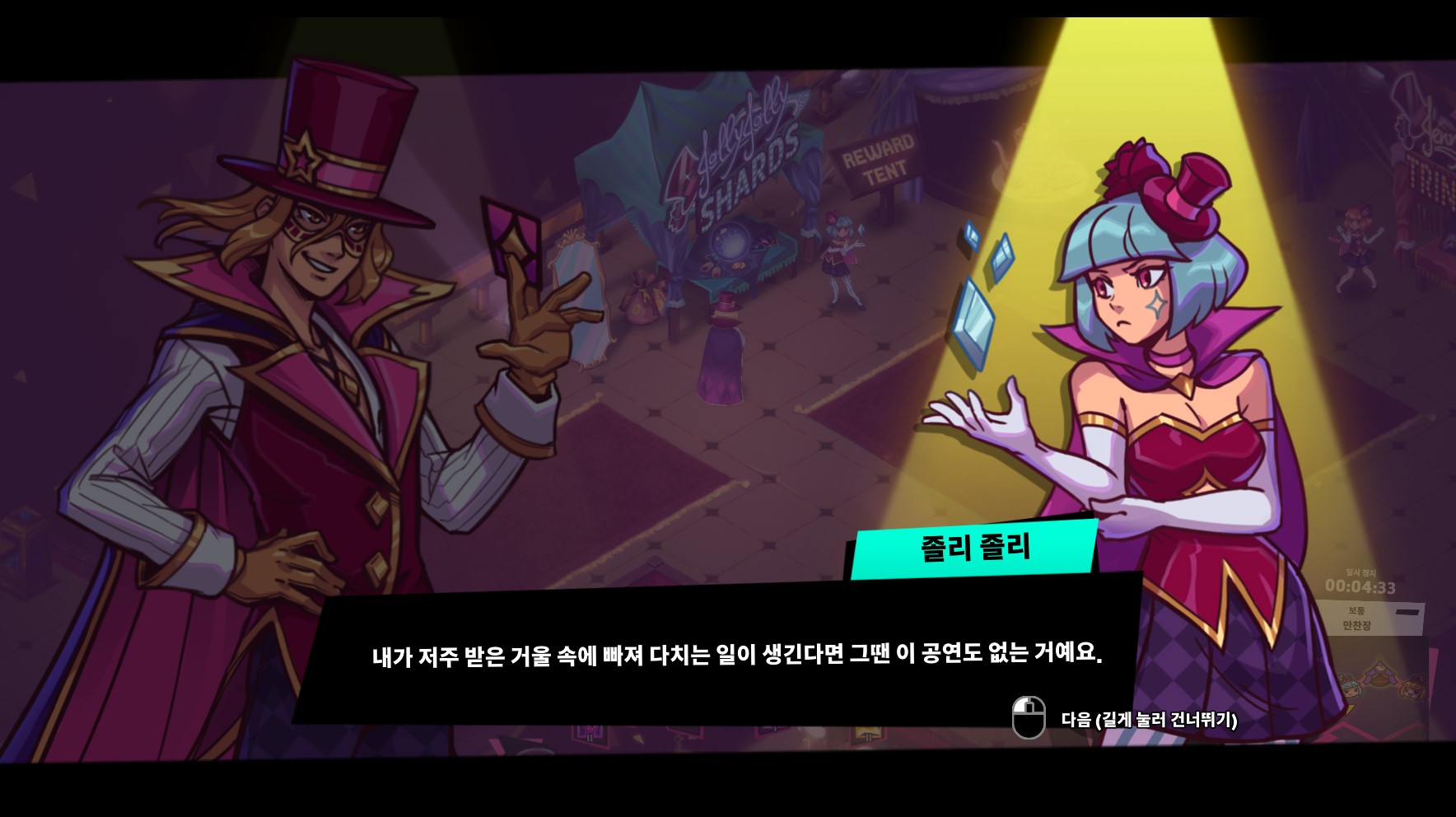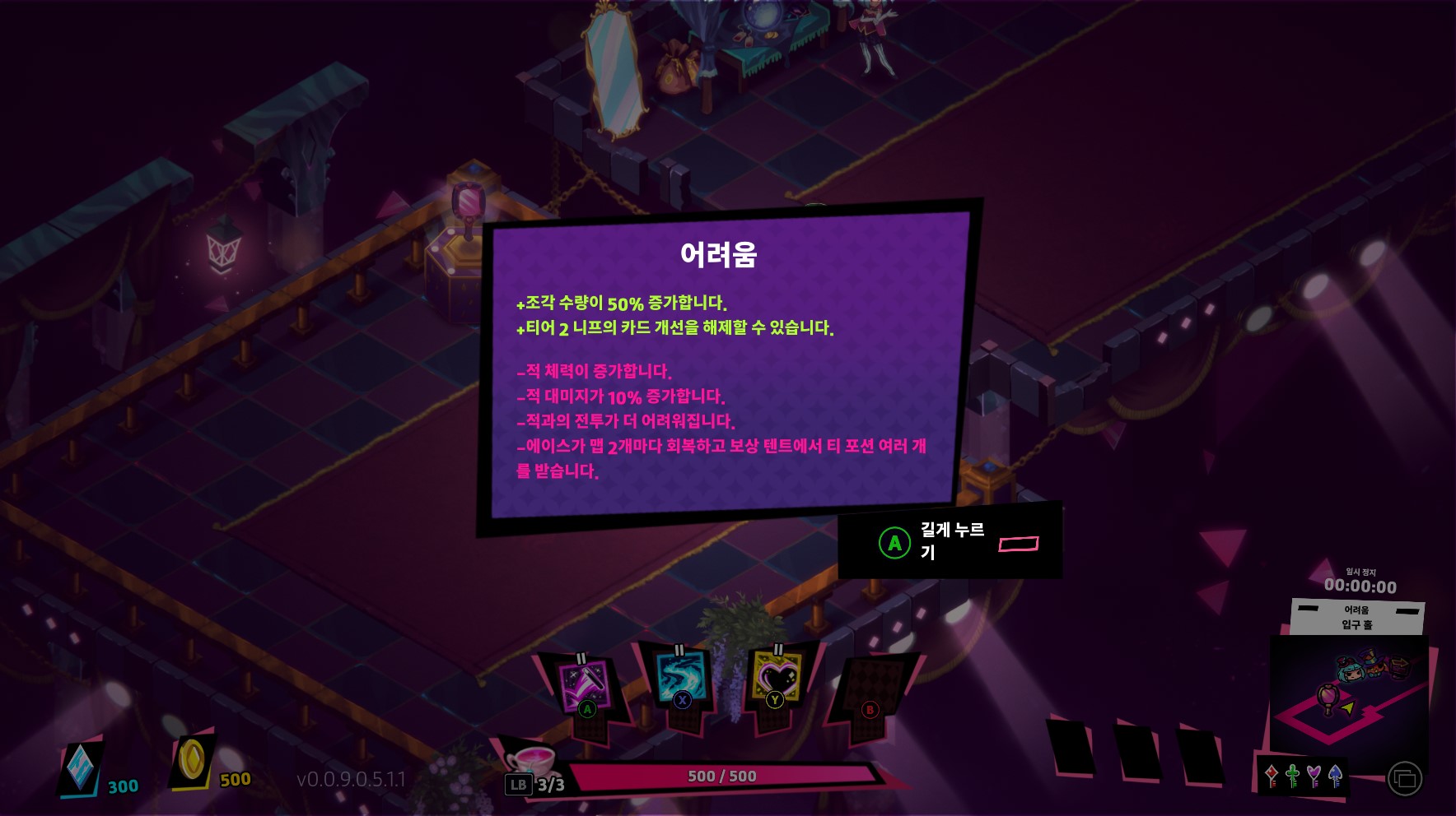 보통 난이도에서 계속하고 싶지만, 강제적으로 넘어가는 건 조금 아쉽다. 이제야 재미있어지고, 할만해졌는데, 강제로 다시 난이도가 올라간 상태로 진행해야 하다니...