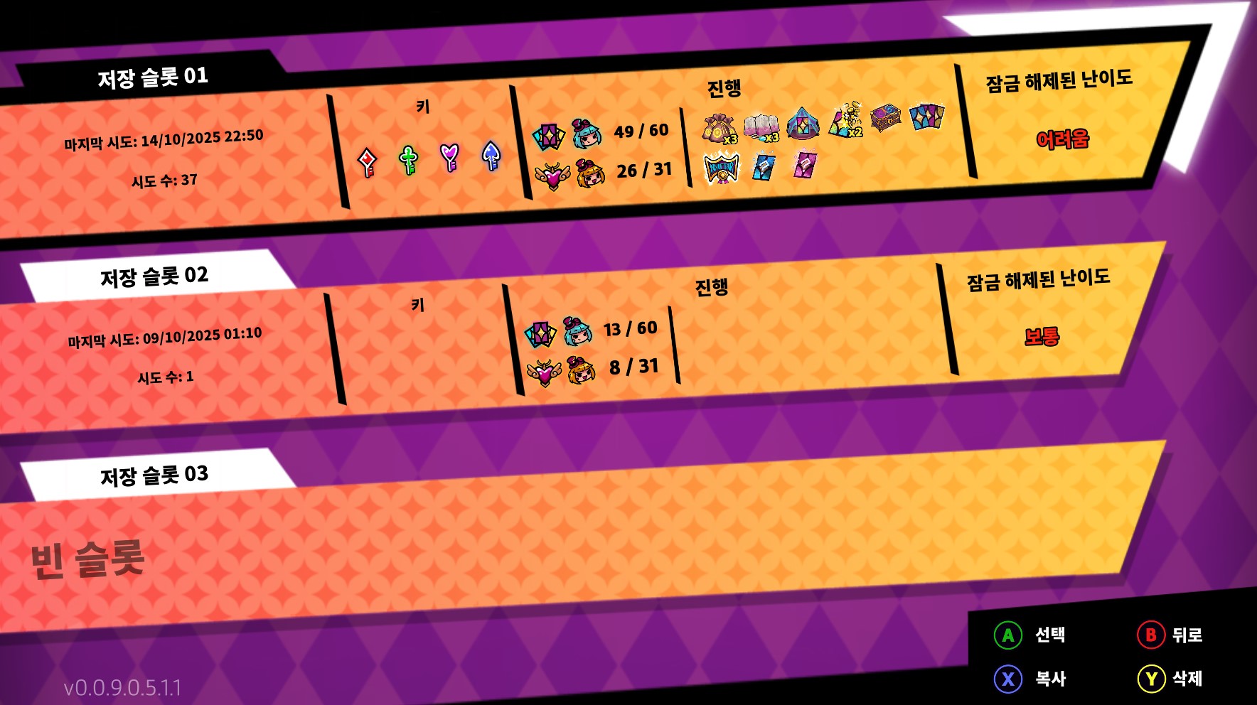 마지막 보스인 렐레를 잡으면, 바로 이어서 어려움 난이도가 열리며 이어서 플레이하게 된다.