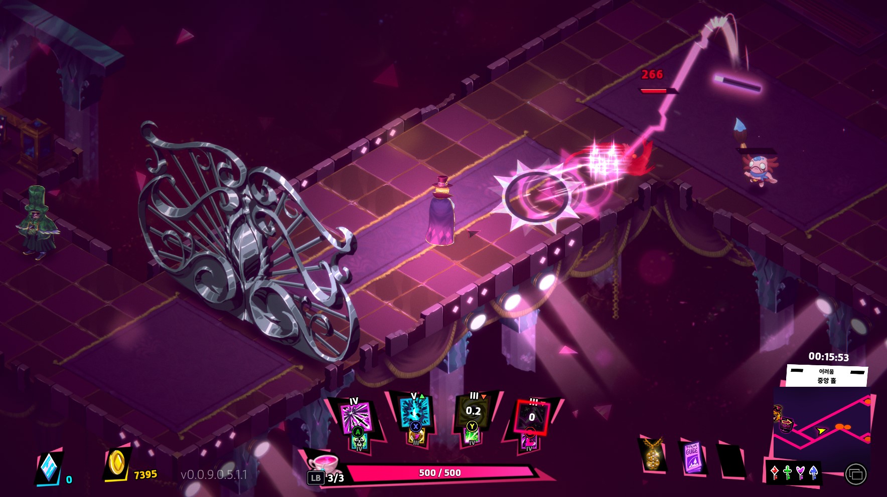 아주 미묘한 강해짐으로 몹 레벨과 딜이 비슷하게 상승하는 느낌이라 시원하게 쓰는 맛이 없지만, 카드를 꾸려서 펑펑 터지기 시작하면 약한 딜로도 큰 연쇄 폭발을 만들면서 재미있는 플레이가 가능하다.