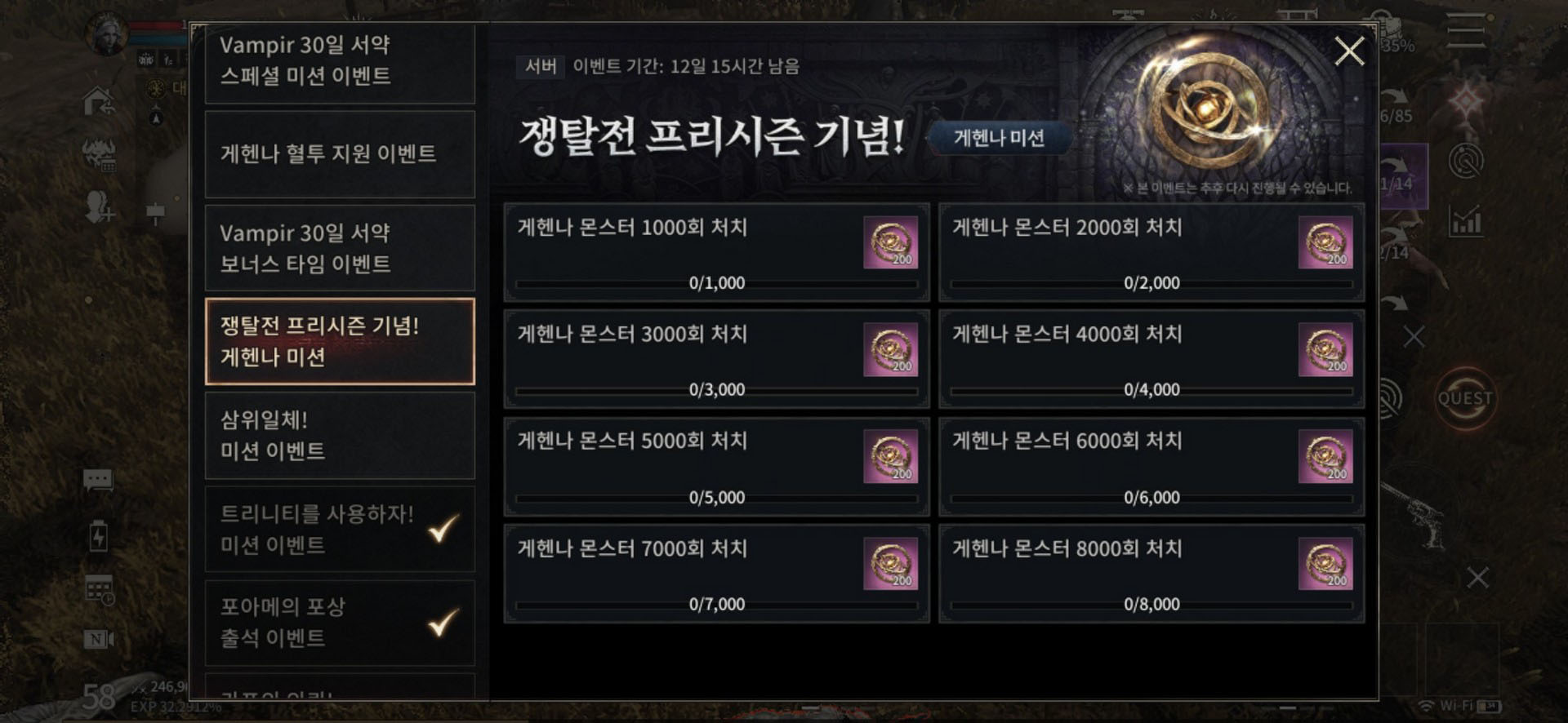 지금은 게헨나를 1층과 2층으로 나눴지만, 그 빈도나 성향이 바뀌지는 않았다. 100마리 잡기도 전에 사냥터를 도는 타서버 유저나 팀이 나타나 대응하기도 전에 죽거나 빨리 안전지대로 회피하는 수밖에 도리가 없다. 이 짓을 게임하면서 하라고? 매번 이벤트마다?