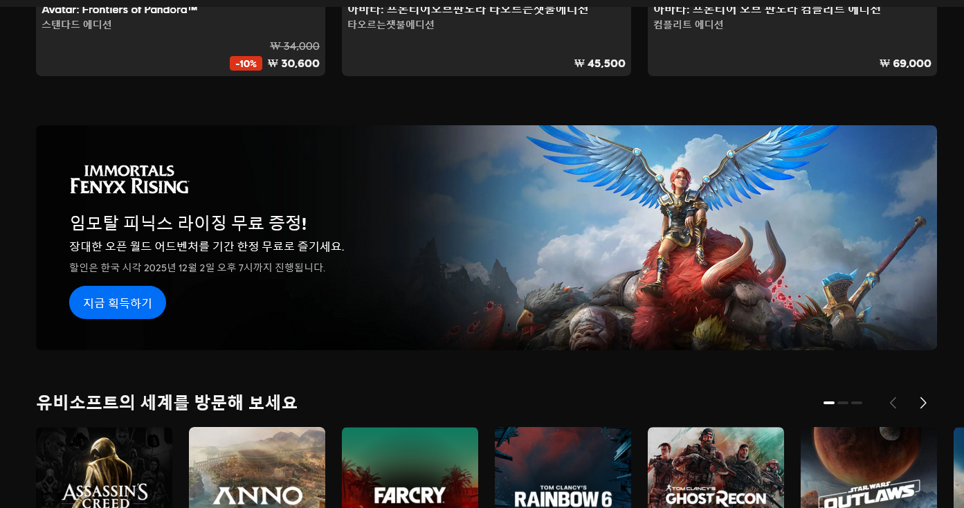 추가> 13일 저녁부터 배포가 시작됐다. 유비소프트 커넥트 - 라이브러리 - 무료 게임 - 추가 또는 유비 스토어에서 중간쯤 있는 배너를 눌러 들어갈 수도 있다. 유비 블랙프라이데이 할인도 함께 진행 중.