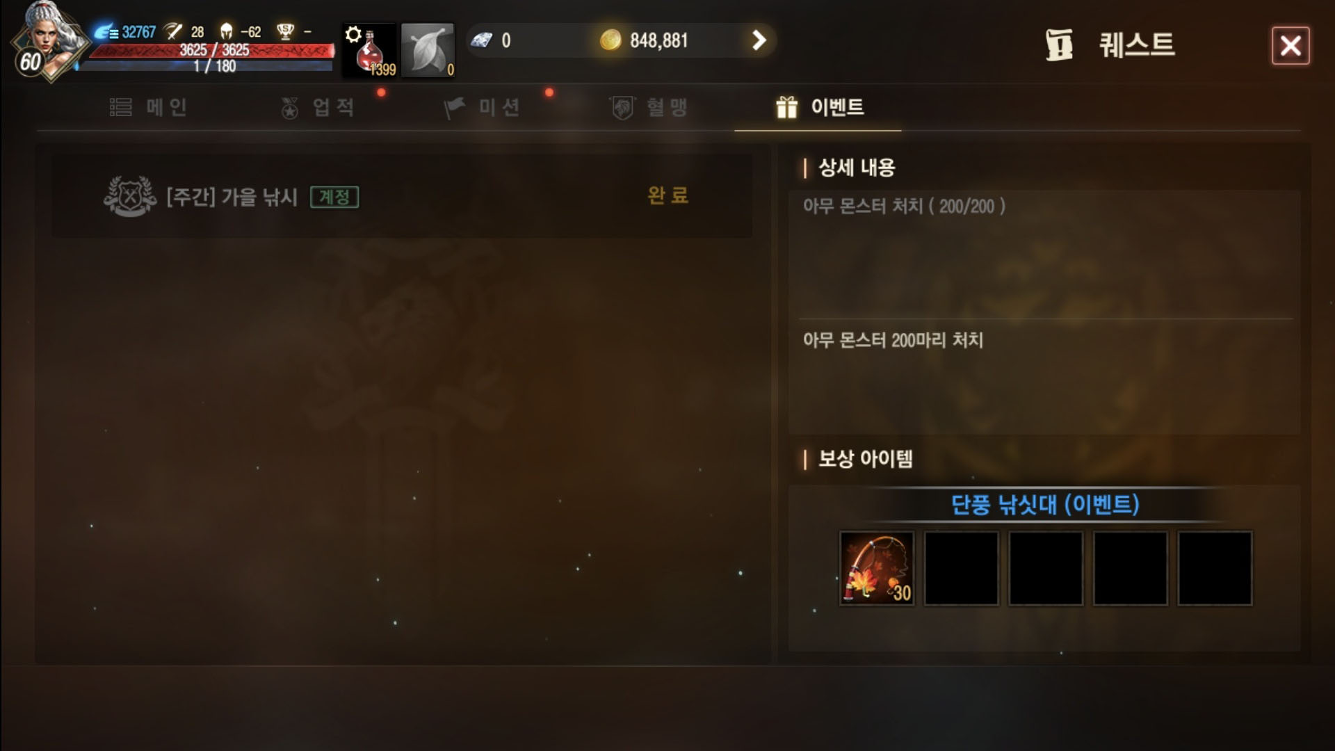 60 레벨을 찍으면 바로 던전에서 튕겨 나오고, 남은 시간에 관계없이 사용할 수 없습니다. 60 레벨이 됐다면 이제 아래 가을 낚시 이벤트를 진행할 수 있습니다.