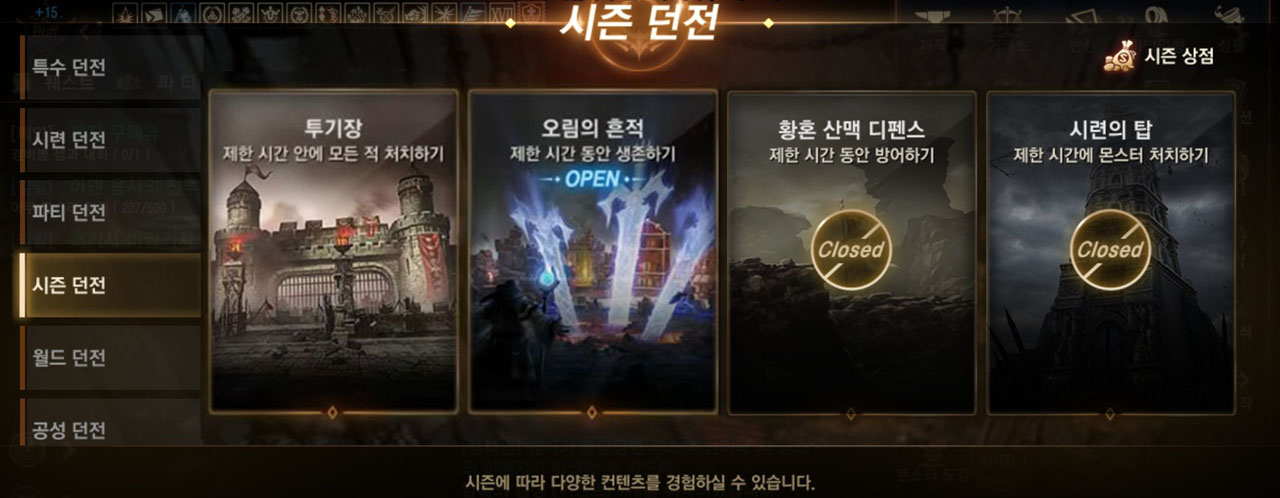 시즌 던전 중 80 레벨 이상 생존 던전 오림의 흔적 시즌 13은 17일 정기점검까지 진행됩니다.