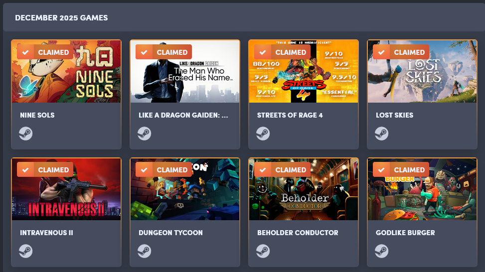 구입 목록을 보면 정말 몇 개 안 샀다. 신작은 없다. 노리는 게임들이 몇 개 있었지만, 이번 겨울 할인이 뭔가 핼러윈이나 게임 어워드 세일 등으로 김이 빠져서 입맛만 다셨다.