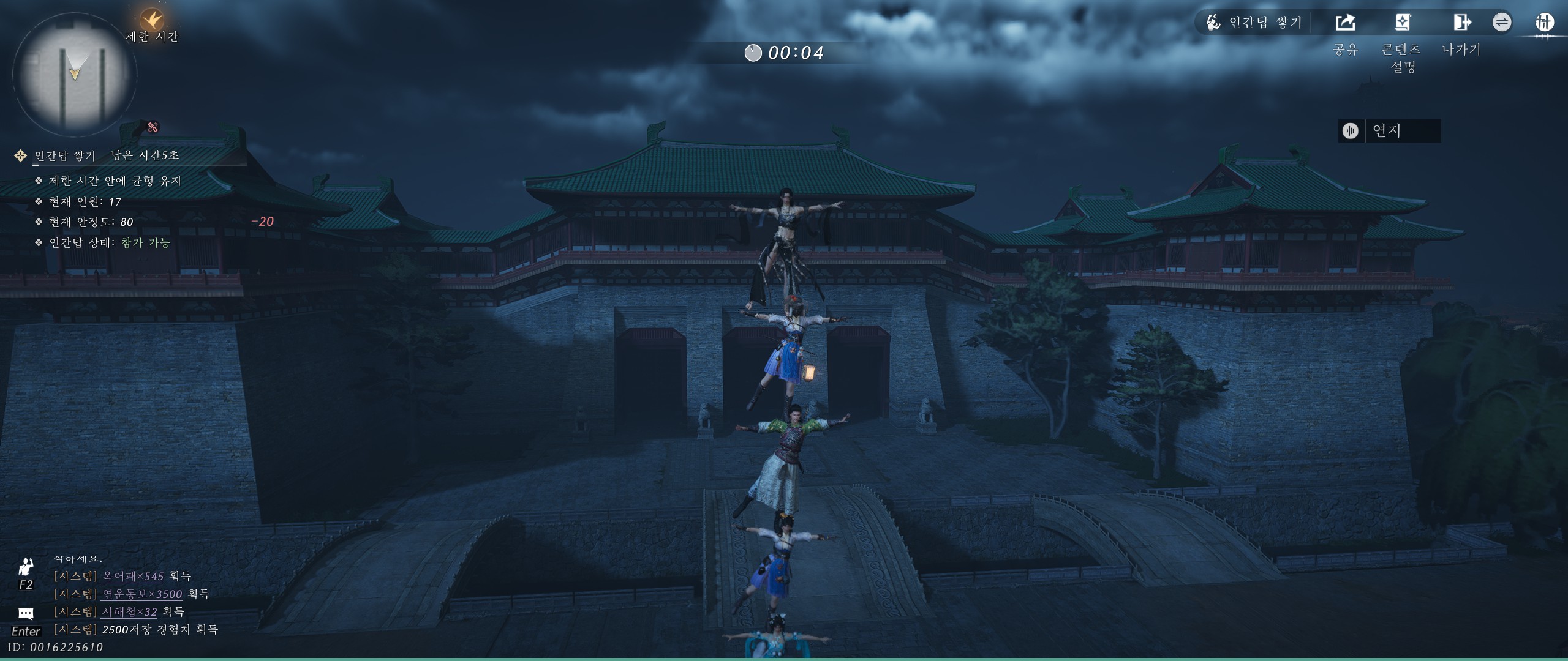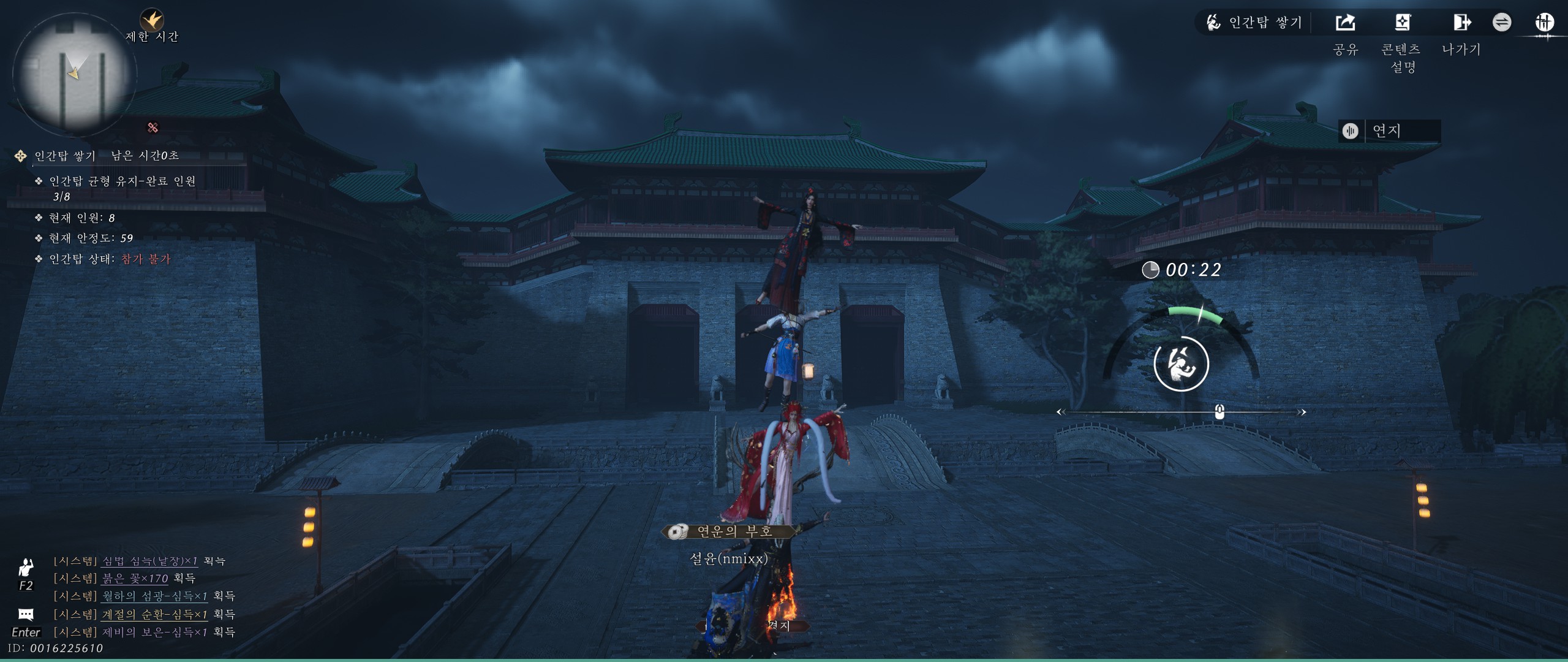 이 중 탑 쌓기 튜토리얼은 청하 지역 풍화촌에서 '1인 탑 쌓기'를 진행해 배워 볼 수 있다.