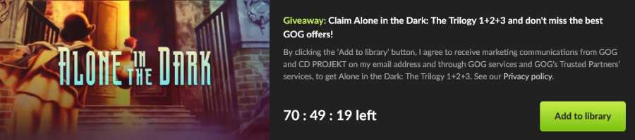 GOG 계정이 있다면 바로 로그인 후 배너만 누르면 간단하게 라이브러리에 등록되는 방식입니다.